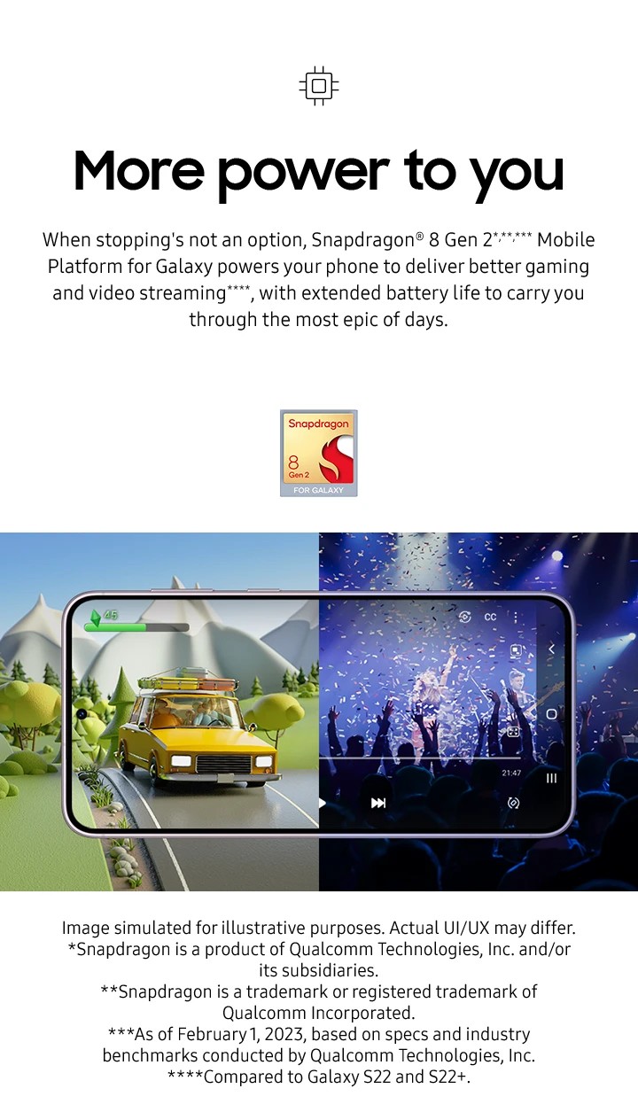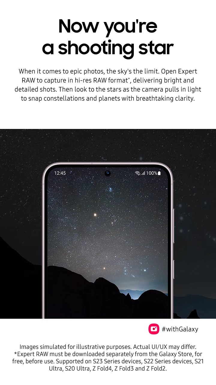 The new Galaxy S23 is your access pass to an epic camera, epic performance and epic display. The 50MP rear camera brings attention-grabbing shots, while Nightography mode allows you to shoot epic shots and selfies even at night. You’ll also experience the ultimate in performance and gameplay with the seriously fast chipset and 6.1” Vision Booster display, which is bright and vibrant even in sunlight.