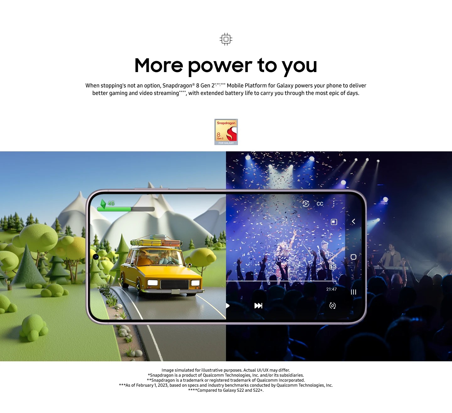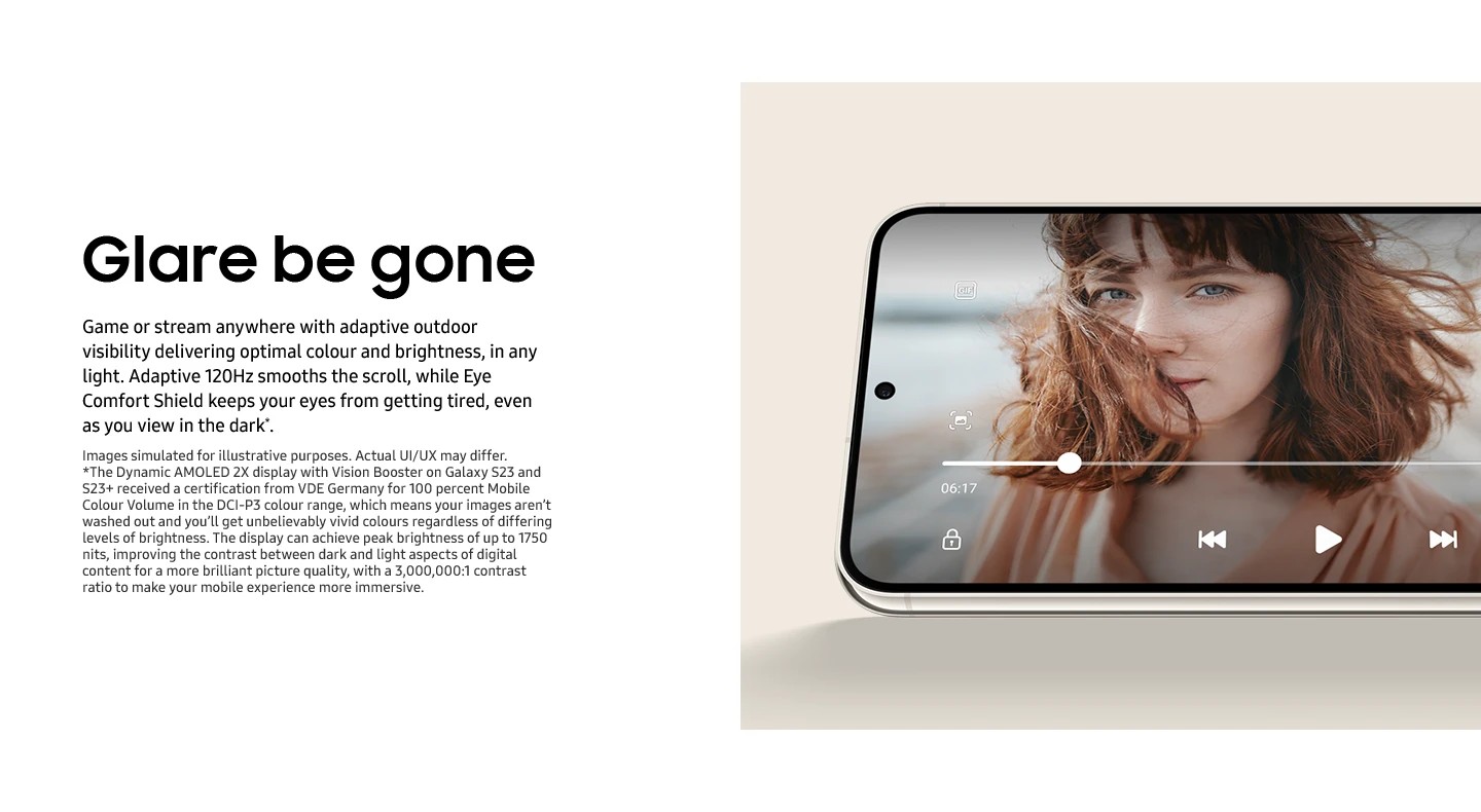- 6.1” Full HD+ Dynamic AMOLED 2X, Gorilla Glass Victus+, Adaptive 120Hz Refresh