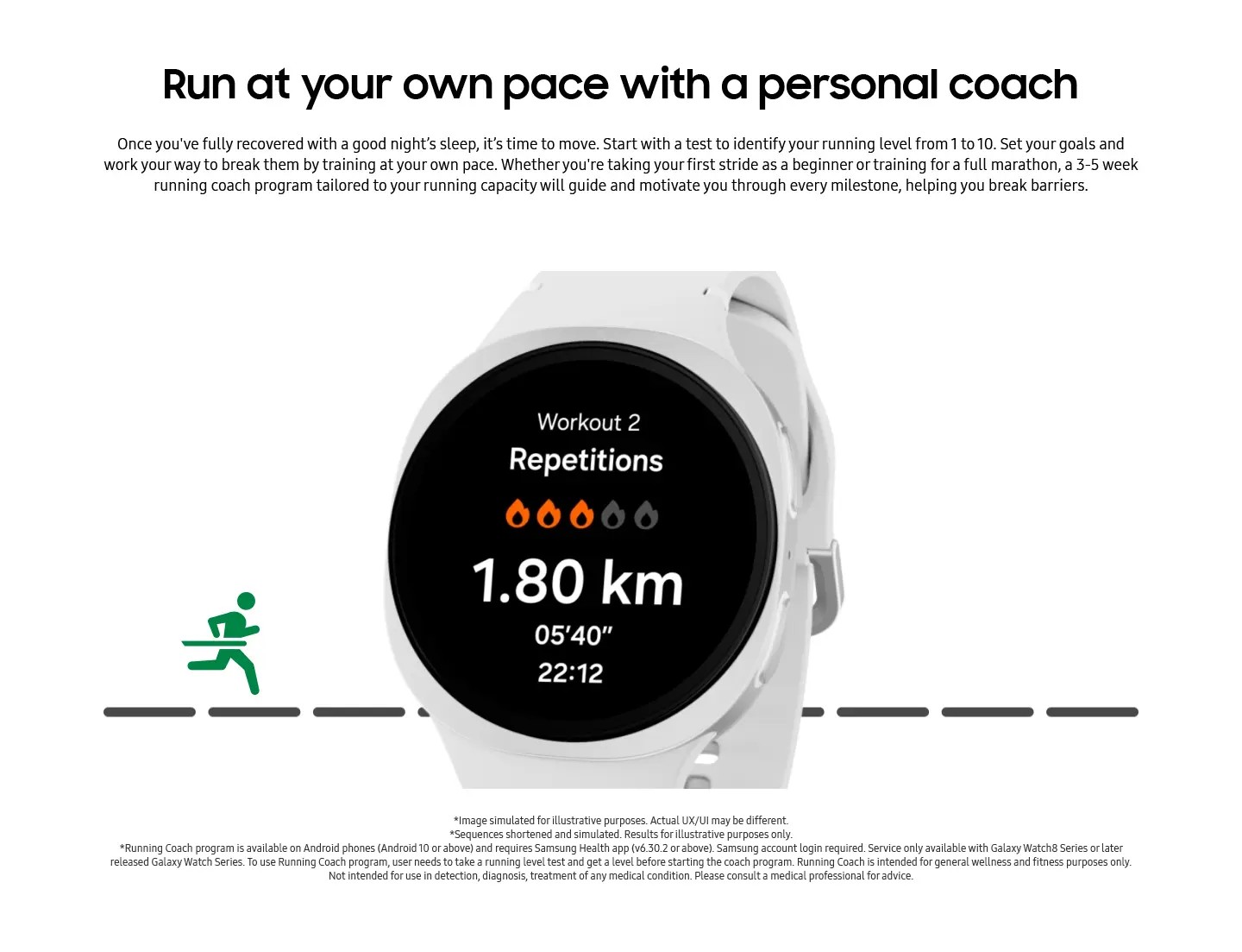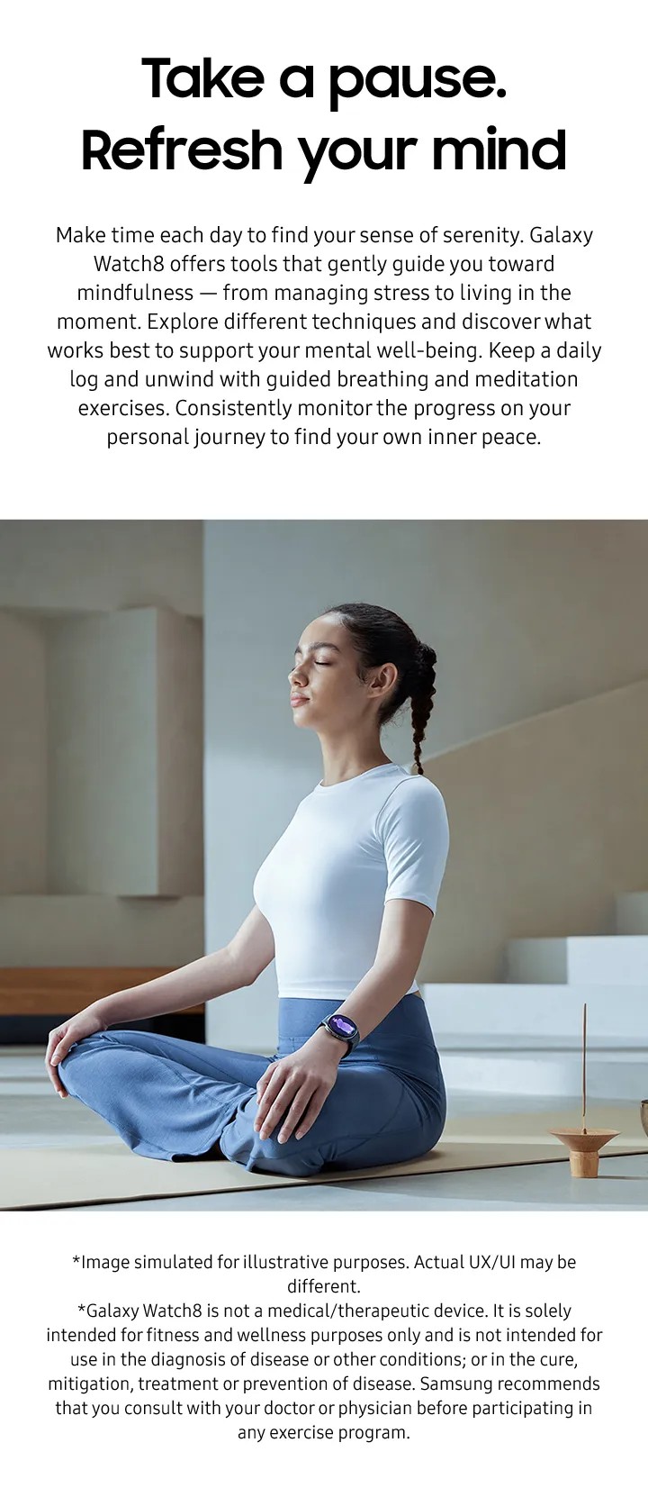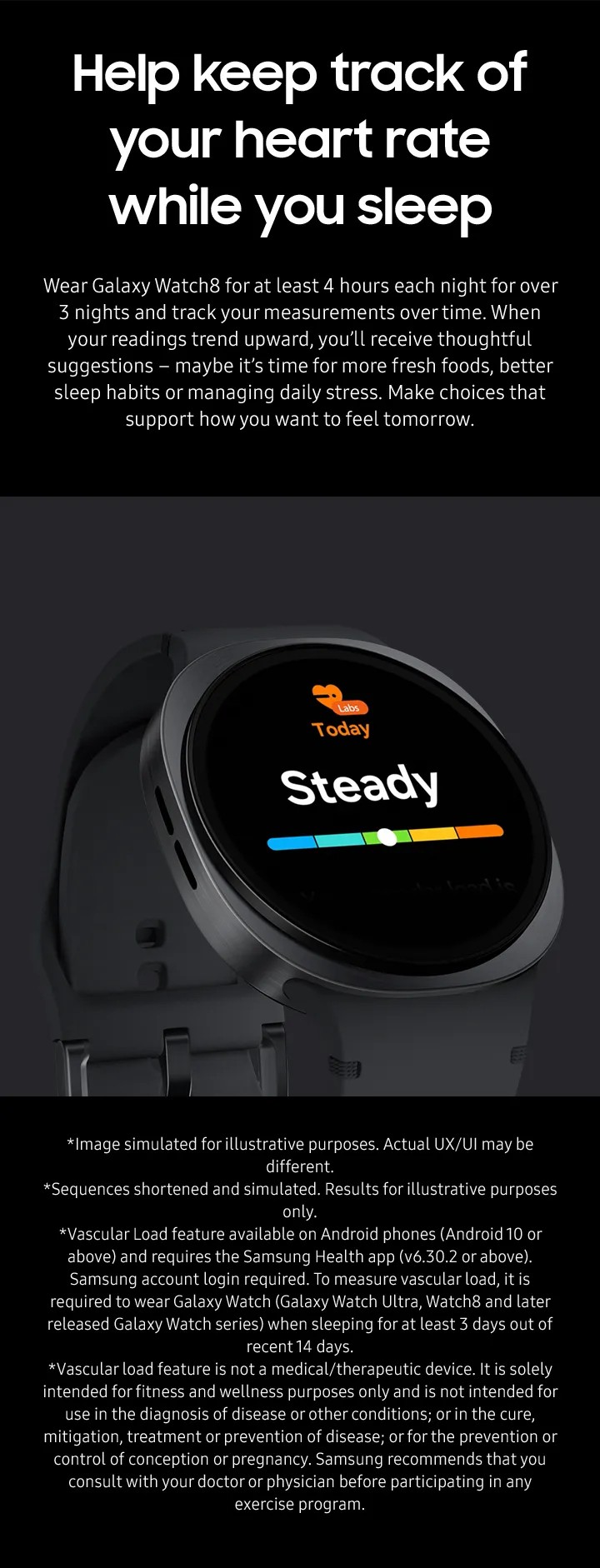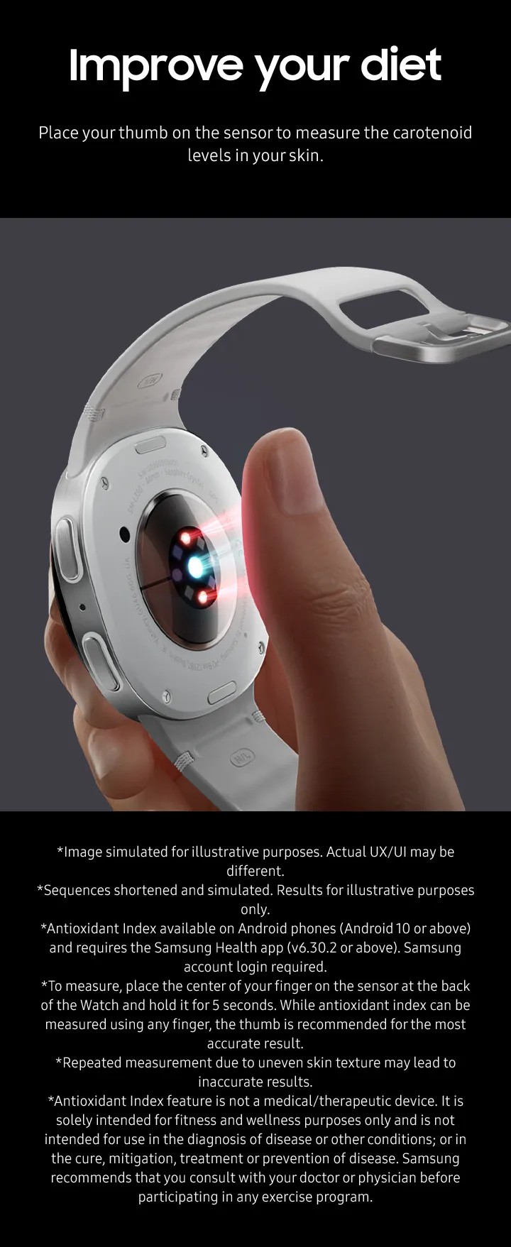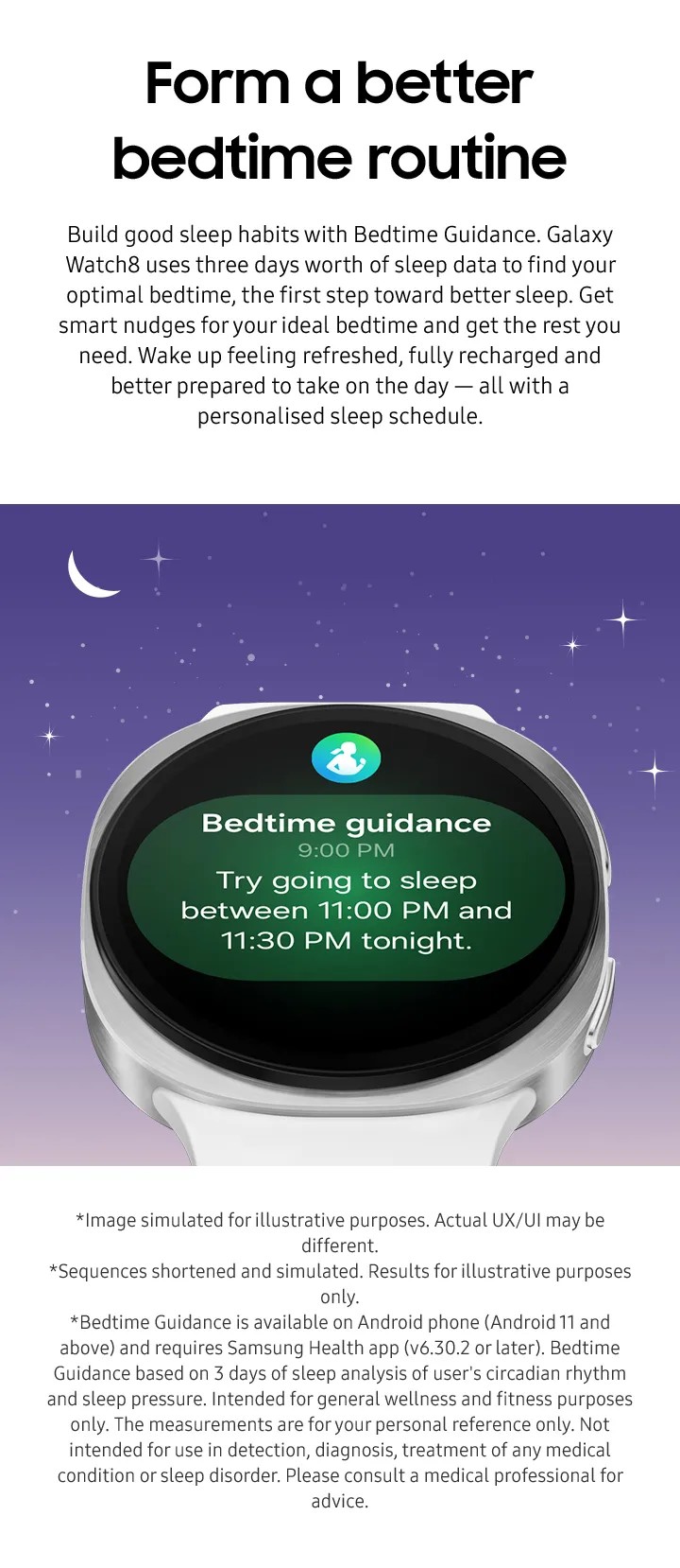 Take control of your wellness with the latest in AI-powered tracking and insights. From smarter workout analysis to intelligent sleep tracking and in-depth insights, you’ll get personalised suggestions, actionable Wellness Tips, and a daily Energy Score – all designed to turn your data into real, everyday impact. It's not just tracking – it’s your wellness story, redefined. Featuring Samsung’s thinnest design ever, enhanced comfort, and a vibrant sapphire crystal display, the Galaxy Watch8 is built to move with you, day and night.