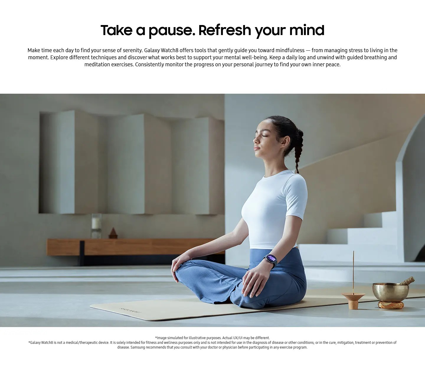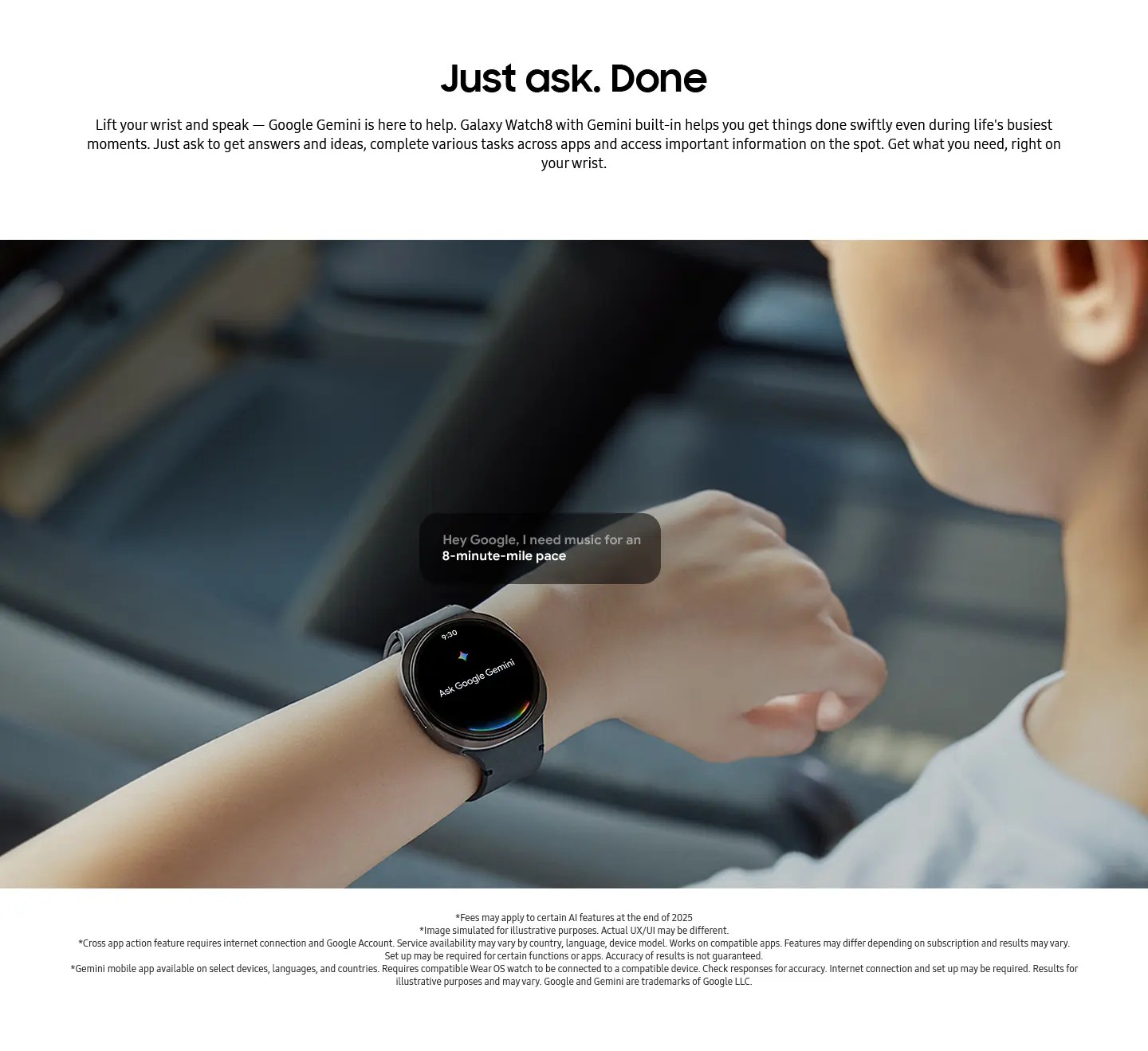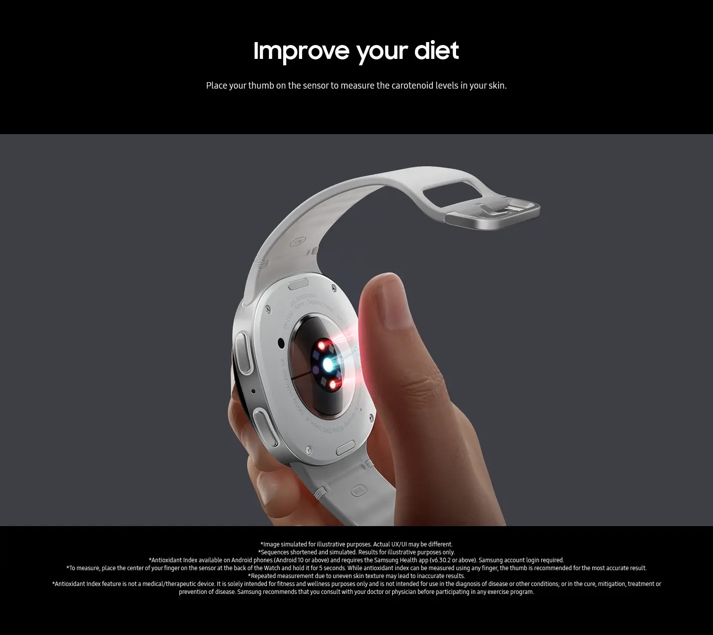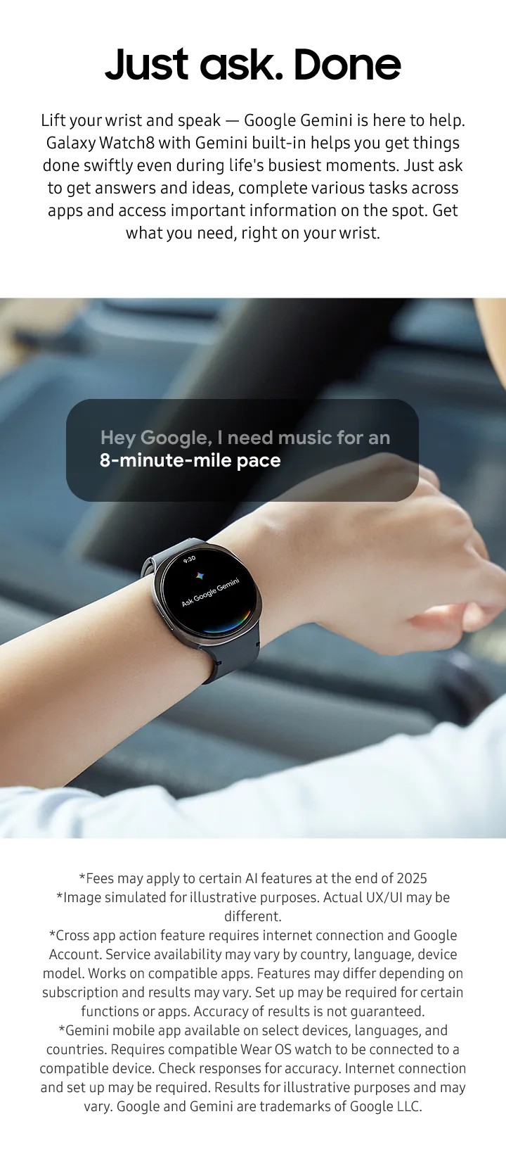 Take control of your wellness with the latest in AI-powered tracking and insights. From smarter workout analysis to intelligent sleep tracking and in-depth insights, you’ll get personalised suggestions, actionable Wellness Tips, and a daily Energy Score – all designed to turn your data into real, everyday impact. It's not just tracking – it’s your wellness story, redefined. Featuring Samsung’s thinnest design ever, enhanced comfort, and a vibrant sapphire crystal display, the Galaxy Watch8 is built to move with you, day and night.