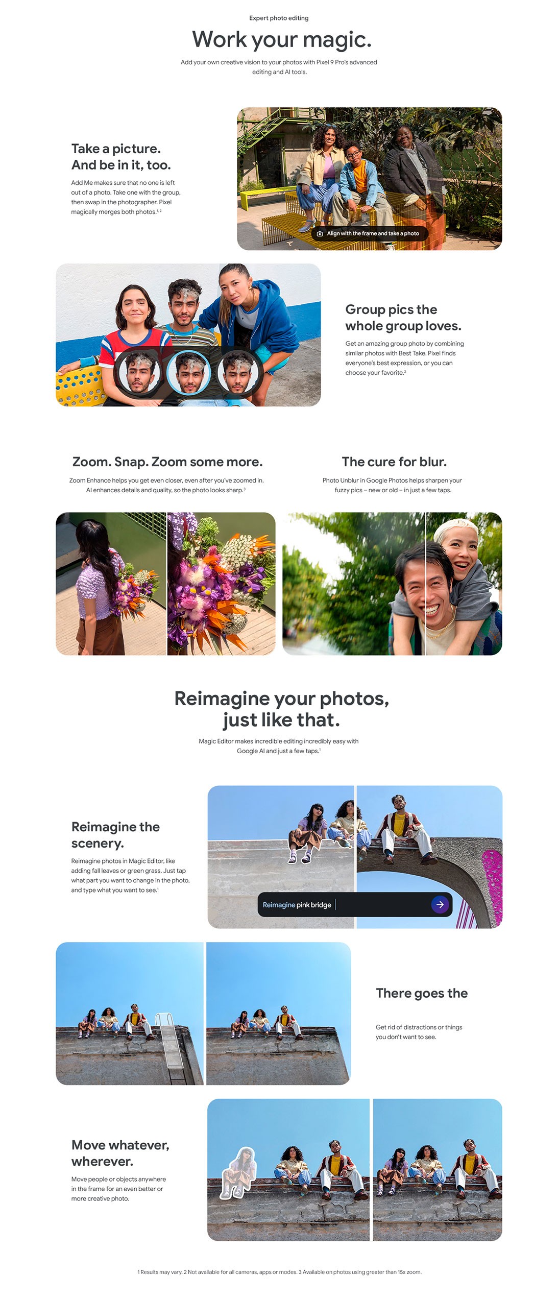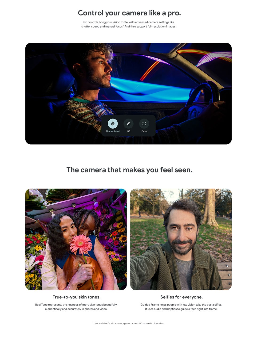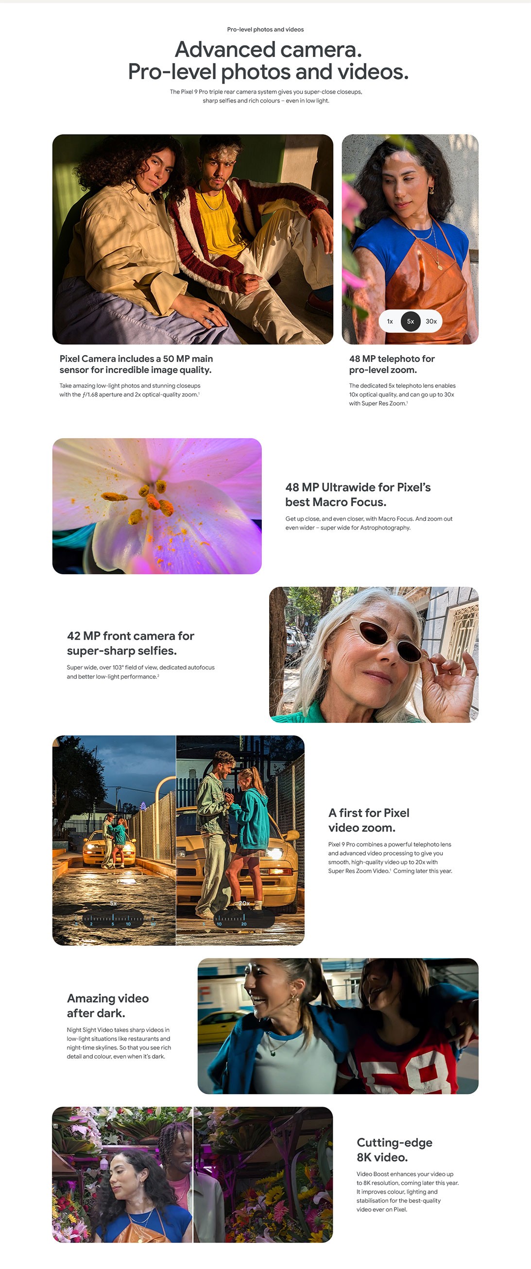 The Google Pixel 9 Pro. All Pro. Pure magic. It’s faster, more efficient and more secure than ever, thanks to the powerful Google Tensor G4 chip. It delivers pro-level photos and video. The triple rear camera is the most powerful Pixel Camera ever. It’s built to last and be super dependable with an all-day battery and a fast charge, so you won’t have to wait. Pixel is now your go to AI assistant with Gemini.
