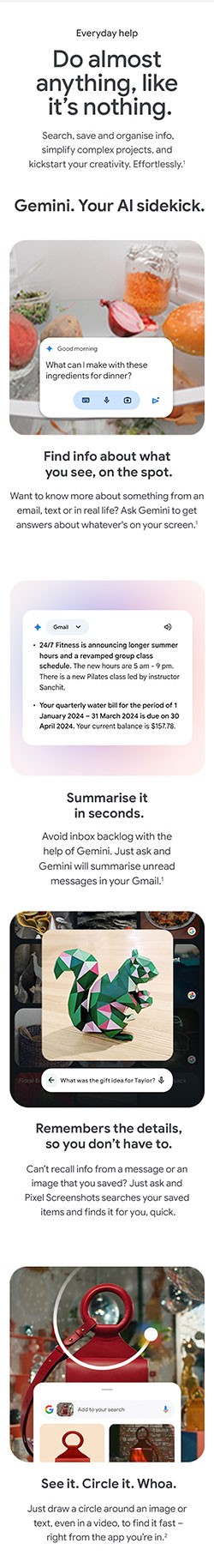 Get a complimentary one-year subscription (RRP $395.88) to Google One AI Premium Plan for eligible users when you get this device on a selected 12, 24 or 36 month plan. Only redeemable via the Google Online Store. Ends 31/10/25. Redeemable till 15/11/25. Exclusions, T&C apply.