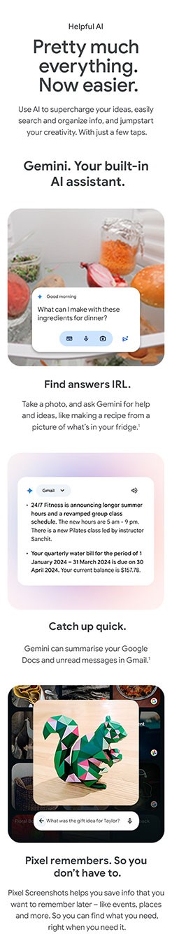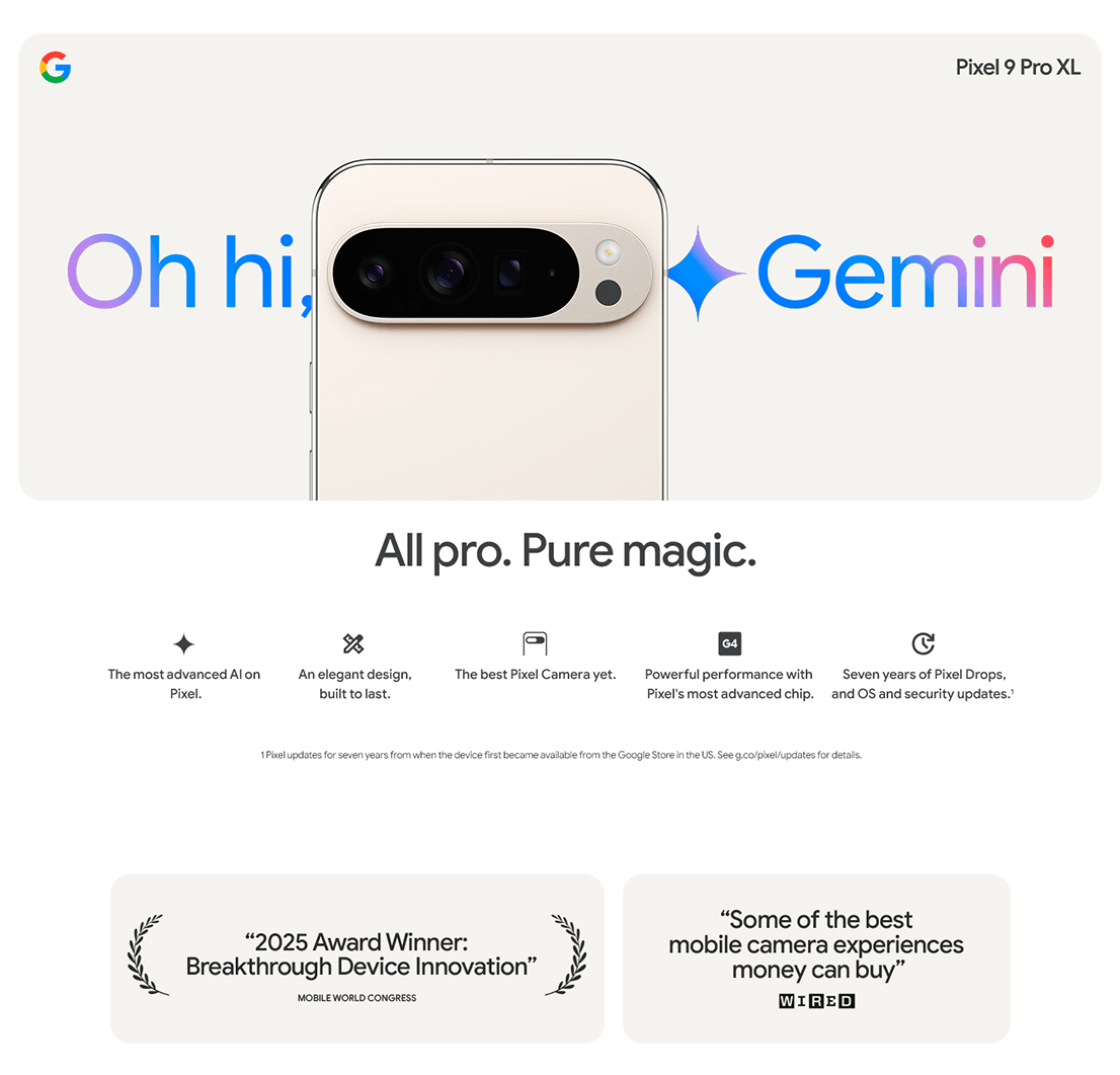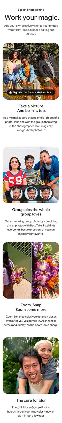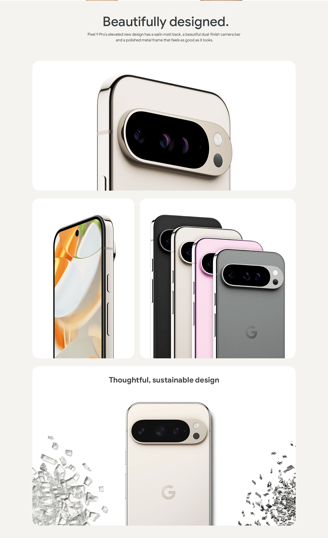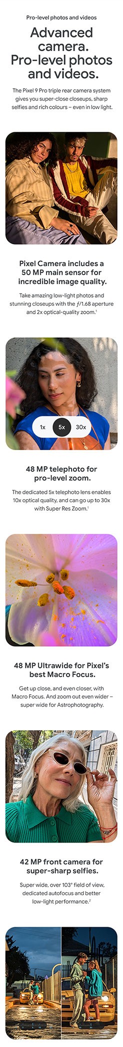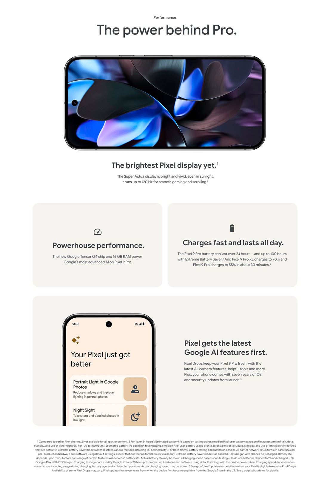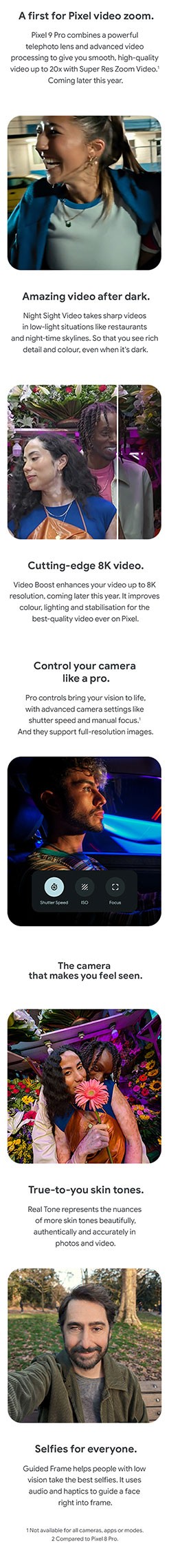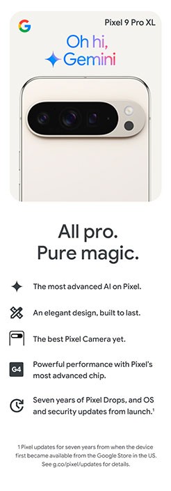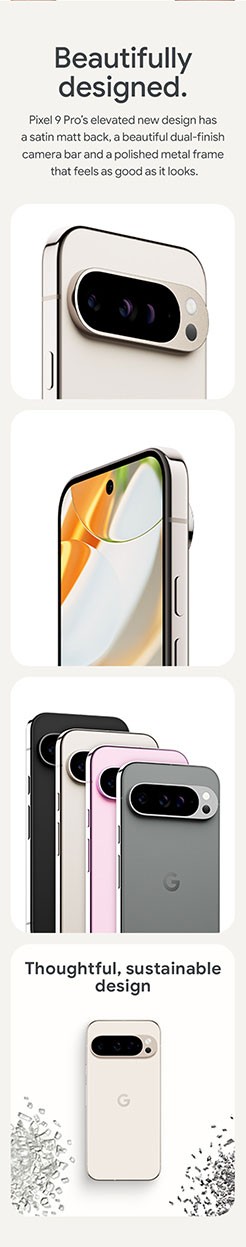 Meet the Pixel 9 Pro XL. It has a sleek, stunning design and it's the most powerful Pixel yet. Take pro-level photos and videos with the triple camera system and make expert edits. And it's engineered by Google, so it gets the best of Google’s AI first.