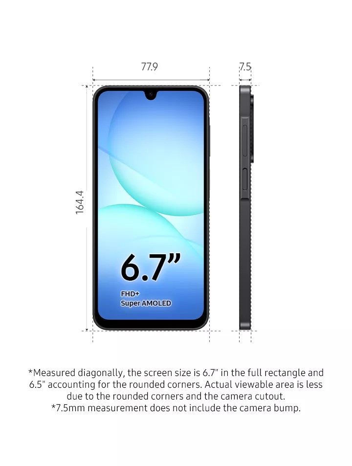 Introducing the new Samsung Galaxy A17 where you can multitask across apps easily with Gemini Live, allowing for cross app action. Enjoy a 50MP main camera with auto focus and 13MP front camera. The Samsung Galaxy A17 also has a large 6.7” display and 90Hz refresh rate designed to immerse you in every moment. Fully express yourself with a slim and light distinctive design with IP54 and Gorilla Glass Victus and long-lasting battery performance and 25W Super-Fast charging (charger sold separately).