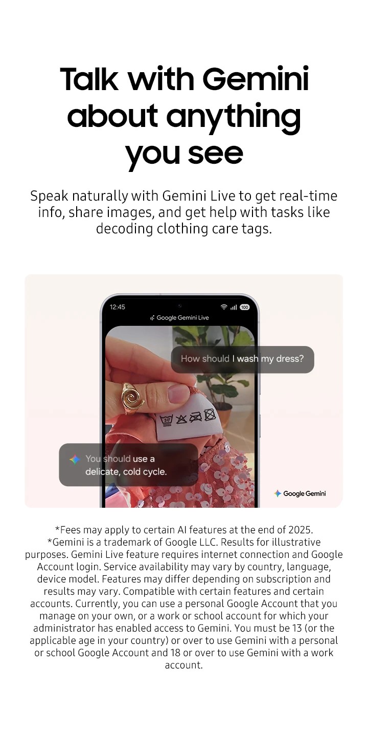 Get a 6-month trial on us ($197.94 value), with higher access to features in the Gemini app like video generation powered by Veo3, plus 2TB of cloud storage. Available with Galaxy S25 Series.