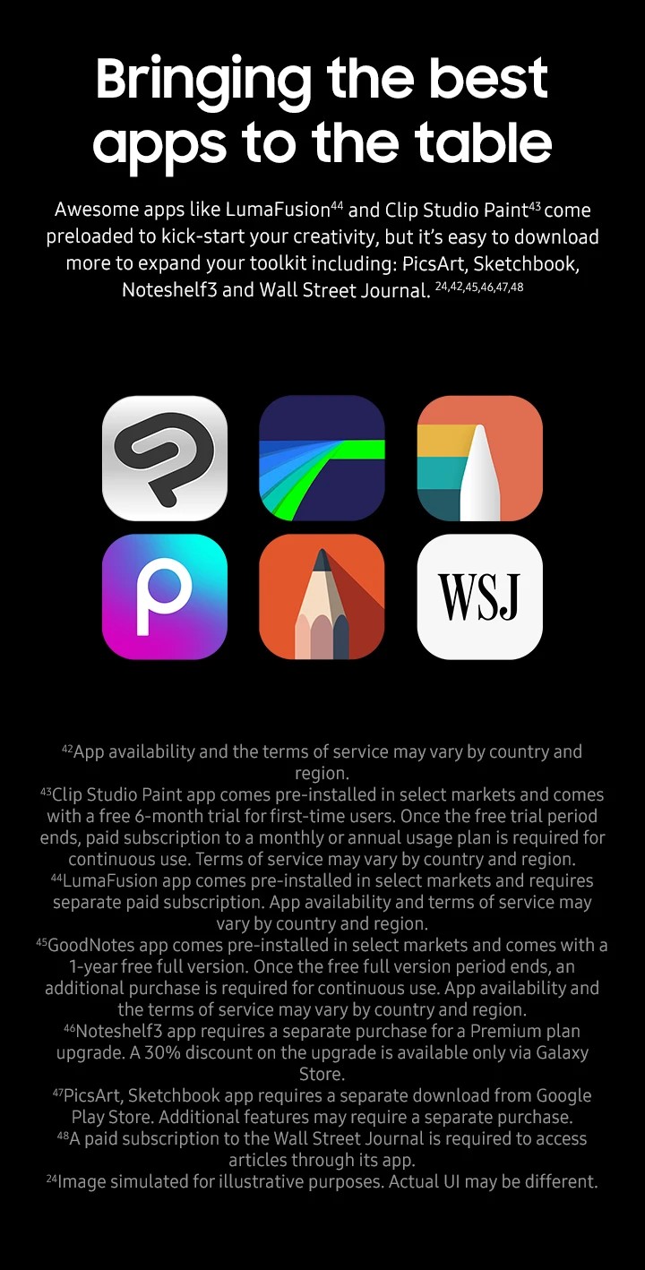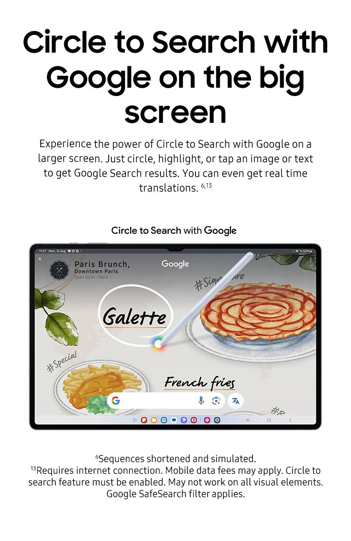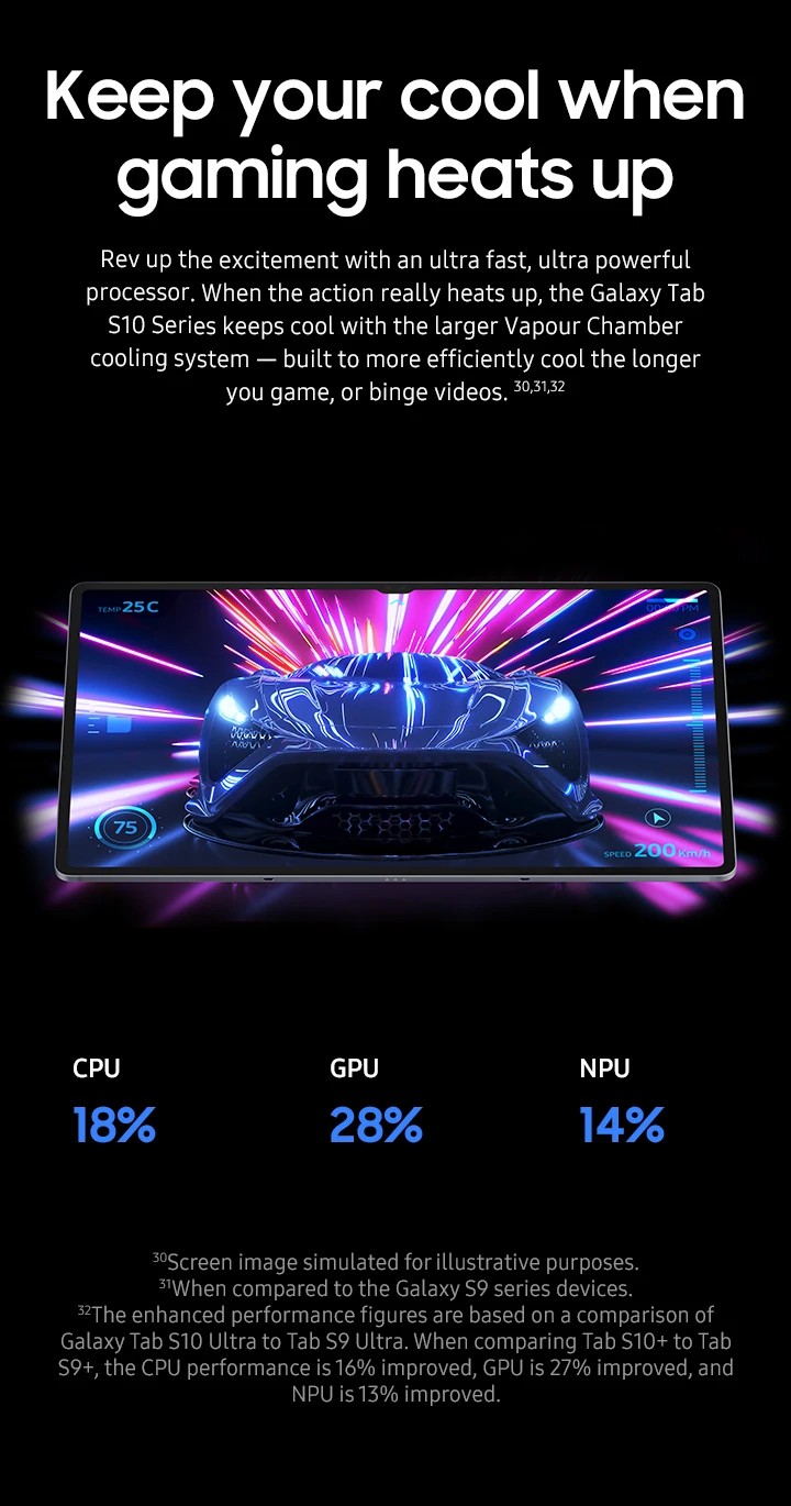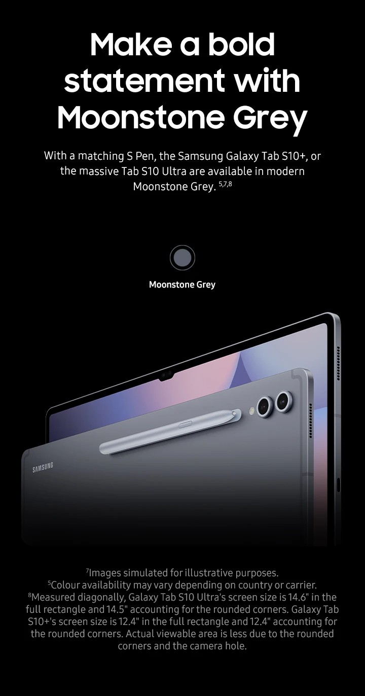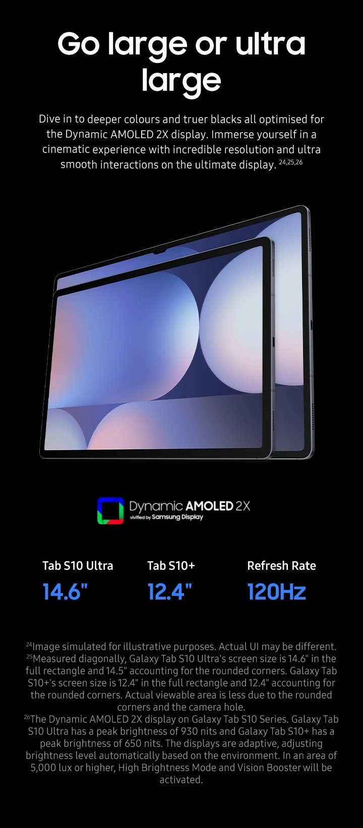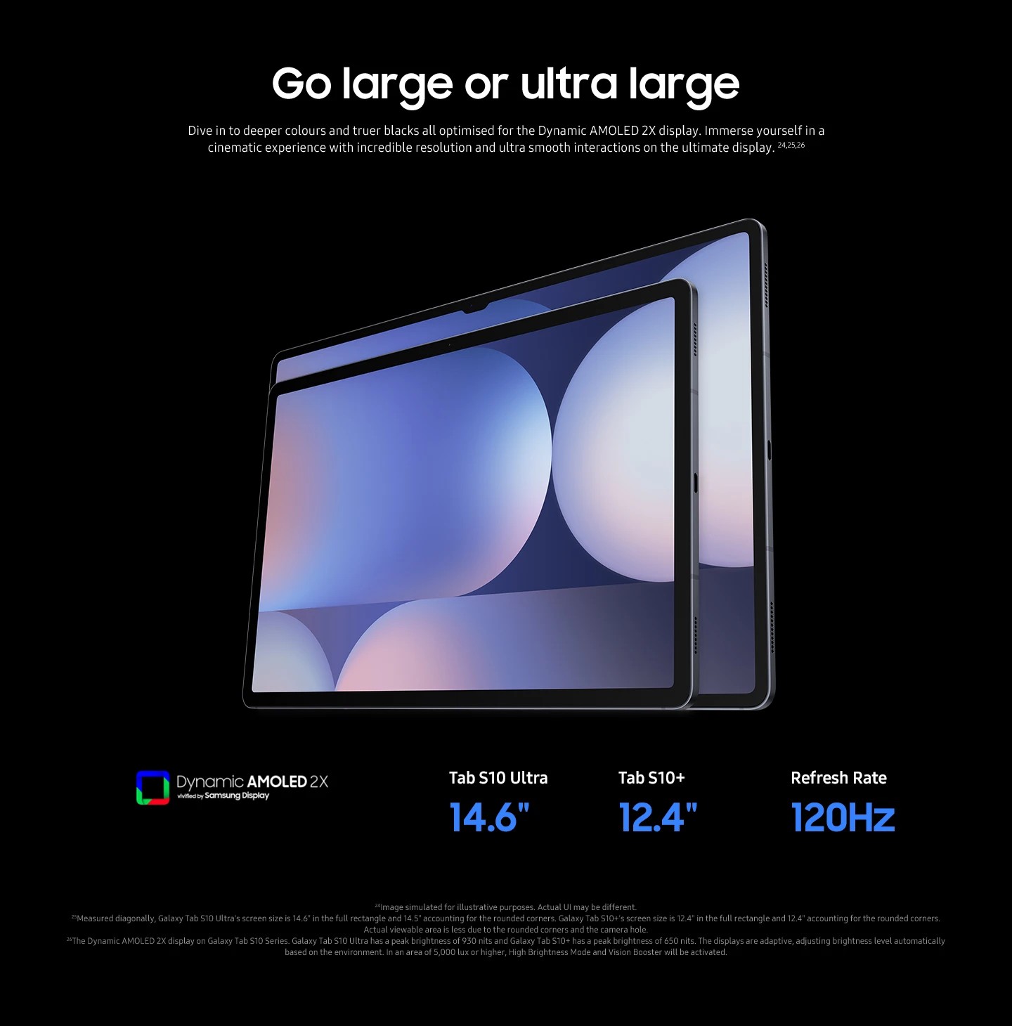 - Lifelike colours for a stunning visual experience on Samsung’s largest tablet screen yet