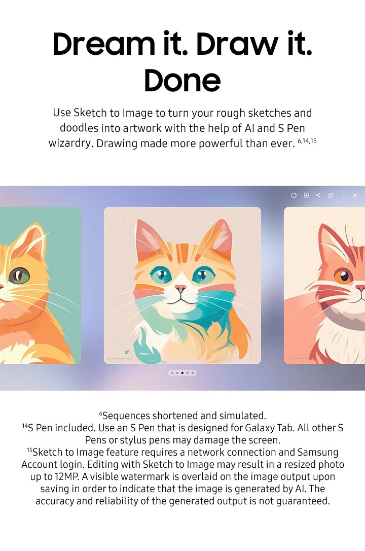 - Galaxy AI tools and features, such as Note Assist, Sketch to Image and Photo Assist